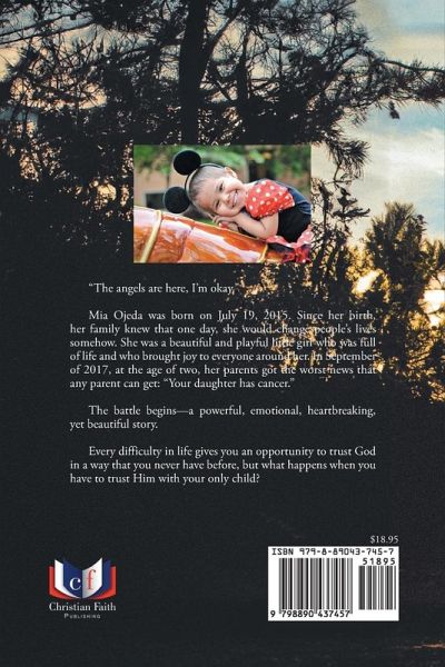 "The angels are here, I'm okay." Mia Ojeda was born on July 19, 2015. Since her birth, her family knew that one day, she would change people's lives somehow. She was a beautiful and playful little girl who was full of life and who brought joy to everyone around her. In September of 2017, at the age of two, her parents got the worst news that any parent can get: "Your daughter has cancer." The battle begins--a powerful, emotional, heartbreaking, yet beautiful story. Every difficulty in life gives you an opportunity to trust God in a way that you never have before, but what happens when you have to trust Him with your only child?
