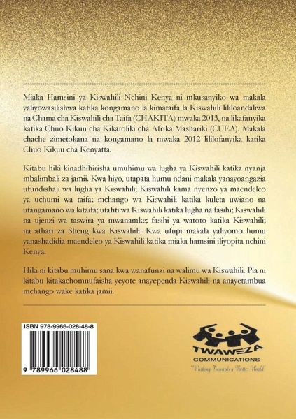 Fifty Years of Kiswahili in Kenya is a collection of articles that were presented at an international Kiswahili conference organized by the National Kiswahili Association (CHAKITA) Kenya in 2013, which was held at the Catholic University of Eastern Africa (CUEA). A few articles are however from a similar conference held in 2012 at Kenyatta University. The book exemplifies the importance of the Kiswahili language in various sectors of society. Therefore, within this book you will find articles that focus on the teaching of the Kiswahili language; Kiswahili as a tool for national economic development; the contribution of Kiswahili to national cohesion and integration; Kiswahili research in language and literature; Kiswahili and portrayal of women; children's literature in Kiswahili; and how Sheng affects Kiswahili. In short, the articles herein are a testimony of how Kiswahili has developed in the last fifty years in Kenya. This is a very important book for Kiswahili students and teachers. It is also an invaluable text for Kiswahili enthusiasts and all those who recognize its contribution to society.