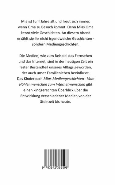 Mia ist fünf Jahre alt und freut sich immer, wenn Oma zu Besuch kommt. Denn Mias Oma kennt viele Geschichten. An diesem Abend erzählt sie ihr nicht irgendwelche Geschichten - sondern Mediengeschichten. Die Medien, wie zum Beispiel das Fernsehen und das Internet, sind in der heutigen Zeit ein fester Bestandteil unseres Alltags geworden, der auch unser Familienleben beeinflusst. Das Kinderbuch Mias Mediengeschichten - Vom Höhlenmenschen zum Internetmenschen gibt einen kindgerechten Überblick über die Entwicklung verschiedener Medien von der Steinzeit bis heute.