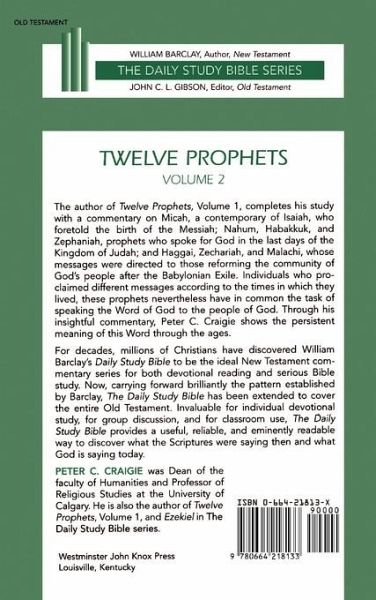 This series of commentaries on the Old Testament, to which Professor Craigie's second volume on the Twelve Prophets belongs, has been planned as a companion series to the much-acclaimed New Testament series of the late Professor William Barclay. As with that series, each volume is arranged in successive headed portions suitable for daily study.