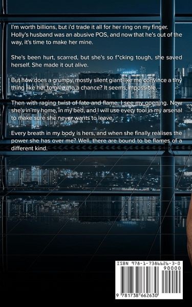 I'm worth billions, but I'd trade it all for her ring on my finger. Holly's husband was an abusive POS, and now that he's out of the way, it's time to make her mine. She's been hurt, scarred, but she's so f*cking tough, she saved herself. She made it out alive. But how does a grumpy, mostly silent giant like me convince a tiny thing like her to give me a chance? It seems impossible. Then with a raging twist of fate and flame, I see my opening. Now she's in my home, in my bed, and I will use every tool in my arsenal to make sure she never wants to leave. Every breath in my body is hers, and when she finally realizes the power she has over me? Well, there are bound to be flames of a different kind. CW: Holly and Micah have both come from tough places. This book deals with adult topics like domestic abuse, sexual assault, physical abuse of a child and pregancy loss. HEA guaranteed. Lots of laughs and plenty of spice.