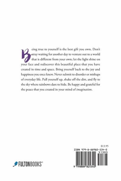 Being true to yourself is the best gift you own. Don't stray waiting for another day to venture out to a world that is different from your own; let the light shine on your face and rediscover this beautiful place that you have created in time and space. Bring yourself back to the joy and happiness you once knew. Never submit to disorder or mishaps of everyday life. Pull yourself up, shake off the dirt, and fly to the sky where rainbows dare to hide. Be happy and grateful for the peace that you created in your mind of imagination.