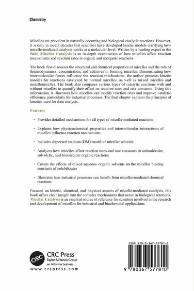 Micelles are prevalent in naturally occurring and biological catalytic reactions. However, it is only in recent decades that scientists have developed kinetic models clarifying how micelle-mediated catalysis works at a molecular level. Written by a leading expert in the field, Micellar Catalysis is an in-depth examination of how micelles affect reaction mechanisms and reaction rates in organic and inorganic reactions. The book first discusses the structural and chemical properties of micelles and the role of thermodynamics, concentration, and additives in forming micelles. Demonstrating how intermolecular forces influence the reaction mechanisms, the author presents kinetic models for reactions catalyzed by normal micelles, as well as mixed micelles and metallomicelles. The book also compares various types of catalytic reactions with and without micelles to quantify their effect on reaction rates and rate constants. Using this information, it illustrates how micelles can modify reaction rates and improve catalytic efficiency, particularly for industrial processes. The final chapter explains the principles of kinetics used for data analysis. Focused on kinetic, chemical, and physical aspects of micelle-mediated reactions, this book offers clear insight into the complex mechanisms that occur in biological reactions. Micellar Catalysis is an essential source of reference for scientists involved in the research and development of micelles for industrial and biochemical applications.