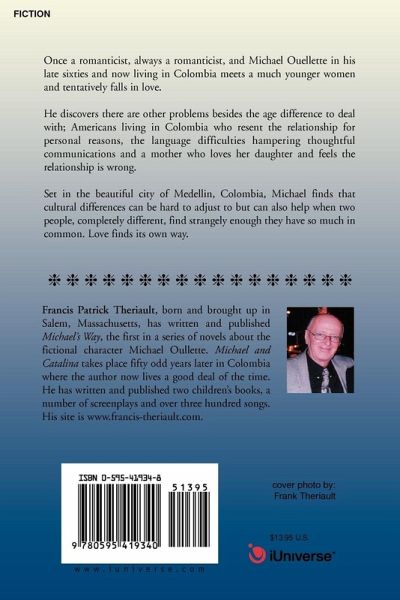Once a romanticist, always a romanticist, and Michael Ouellette in his late sixties and now living in Colombia meets a much younger women and tentatively falls in love. He discovers there are other problems besides the age difference to deal with; Americans living in Colombia who resent the relationship for personal reasons, the language difficulties hampering thoughtful communications and a mother who loves her daughter and feels the relationship is wrong. Set in the beautiful city of Medellin, Colombia, Michael finds that cultural differences can be hard to adjust to but can also help when two people, completely different, find strangely enough they have so much in common. Love finds its own way.