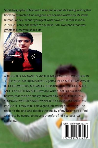 Short biography of Michael Clarke and about life.During writing this book no character & no religious are harmed written by Mr Vivek Kumar Pandey. winner youngest writer award 1st rank in india 2020.He is only one writer can publish 770+ own book that was greatest successfull in his life.