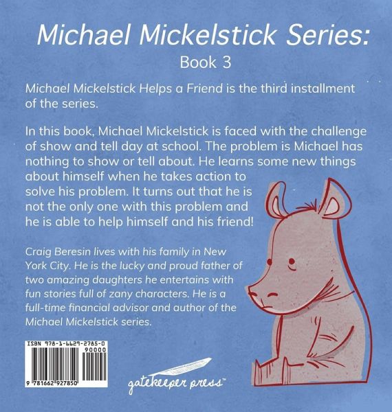 Michael Mickelstick Helps a Friend is the third installment of the series. In this book, Michael Mickelstick is faced with the challenge of show and tell day at school. The problem is Michael has nothing to show or tell about. He learns some new things about himself when he take action to solve his problem. It turns out that he is not the only one with this problem and he is able to help himself and his friend!