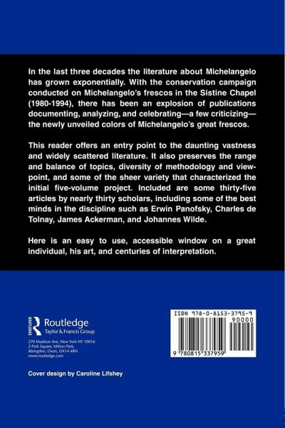 Michaelangelo: Selected Readings is the long-awaited condensation of the five volume English article collection of Michaelangelo's life. Selections include: Life and Early Works; The Sistine Chapel; San Lorenzo; Tomb of Julius II and Other Works in Rome; and Drawings, Poetry and Miscellaneous Studies.