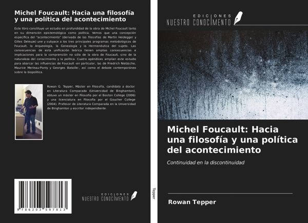 Este libro constituye un estudio en profundidad de la obra de Michel Foucault tanto en su dimensión epistemológica como política. Vemos que una concepción específica del "acontecimiento" (derivada de las filosofías de Martin Heidegger y Gilles Deleuze) une y subyace a los tres principales programas metodológicos de Foucault, la Arqueología, la Genealogía y la Hermenéutica del sujeto. Las consecuencias de esta unificación teórica tienen amplias consecuencias e implicaciones para la comprensión no sólo de la obra de Foucault, sino de la naturaleza del conocimiento y la política. Cuatro apéndices amplían este estudio para abarcar las influencias de Foucault -en particular, las de Friedrich Nietzsche, Maurice Merleau-Ponty y Georges Bataille-, así como el debate contemporáneo sobre la biopolítica.
