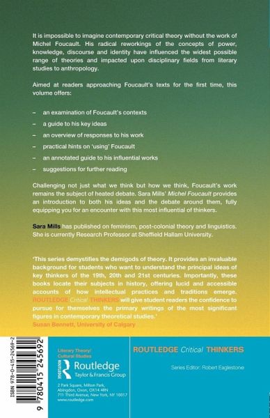 Sara Mills offers an introduction to both the ideas of Michel Foucault and the debate surrounding him, fully equipping student readers for an encounter with this most influential of thinkers.