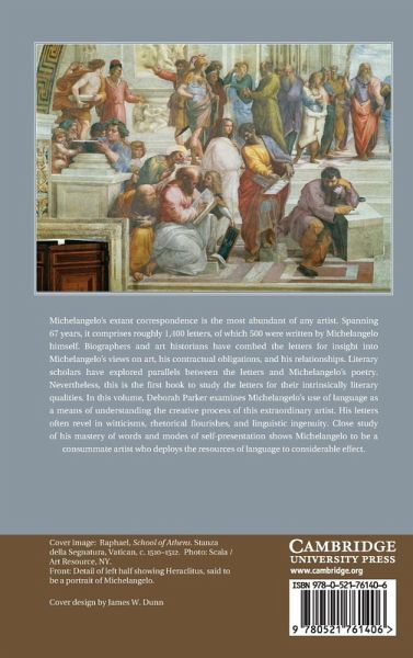 Michelangelo's extant correspondence is the most abundant of any artist. Spanning 67 years, it comprises roughly 1,400 letters, of which 500 were written by Michelangelo himself. Biographers and art historians have combed the letters for insight into Michelangelo's views on art, his contractual obligations, and his relationships. Literary scholars have explored parallels between the letters and Michelangelo's poetry. Nevertheless, this is the first book to study the letters for their intrinsically literary qualities. In this volume, Deborah Parker examines Michelangelo's use of language as a means of understanding the creative process of this extraordinary artist. His letters often revel in witticisms, rhetorical flourishes, and linguistic ingenuity. Close study of his mastery of words and modes of self-presentation shows Michelangelo to be a consummate artist who deploys the resources of language to considerable effect.