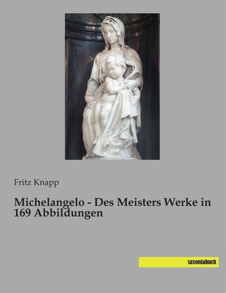 Michelangelo - Des Meisters Werke in 169 s/w Abbildungen herausgegeben im Jahre 1907 von Fritz Knapp. Michelangelo Buonarroti, oft nur Michelangelo (1475-1564) genannt, war ein italienischer Maler, Bildhauer, Architekt und Dichter. Er gilt als einer der bedeutendsten Künstler der italienischen Hochrenaissance und weit darüber hinaus. Michelangelo sah sich in erster Linie als Bildhauer, nicht als Maler, Architekt oder Dichter, obwohl er auf allen diesen Gebieten Bedeutendes und Wegweisendes leistete. Doch die Skulptur stellte er über alle anderen Kunstformen, was viele seiner Briefe belegen, die noch dazu meist mit Michelagniolo, scultore unterzeichnet sind. Seinen platonischen Auffassungen entsprechend basierte Michelangelos künstlerisches Schaffen auf der Vorstellung, dass der Geist als höchstes Prinzip die Idee enthält, die allem sinnlichen Erfahren übergeordnet ist.(Wikipedia)