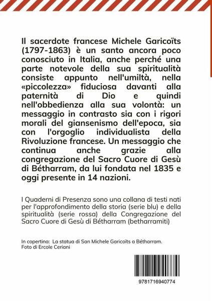 Il sacerdote francese Michele Garicoïts (1797-1863) è un santo ancora poco conosciuto in Italia, anche perché una parte notevole della sua spiritualità consiste appunto nell'umiltà, nella piccolezza fiduciosa davanti alla paternità di Dio e quindi nell'obbedienza alla sua volontà: un messaggio in contrasto sia con i rigori morali del giansenismo dell'epoca, sia con l'orgoglio individualista della Rivoluzione francese. Un messaggio che continua anche grazie alla congregazione del Sacro Cuore di Gesù di Bétharram, da lui fondata nel 1835 e oggi presente in 14 nazioni.