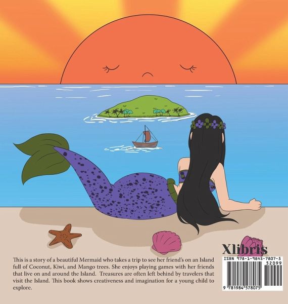 This is a story of a beautiful Mermaid who takes a trip to see her friend's on an Island full of Coconut, Kiwi, and Mango trees. She enjoys playing games with her friends that live on and around the Island. Treasures are often left behind by travelers that visit the Island. This book shows creativeness and imagination for a young child to explore.