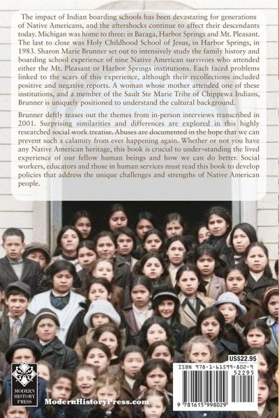 The impact of Indian boarding schools has been devastating for generations of Native Americans, and the aftershocks continue to affect their descendants today. Michigan was home to three: in Baraga, Harbor Springs and Mt. Pleasant. The last to close was Holy Childhood School of Jesus, in Harbor Springs, in 1983. Sharon Marie Brunner set out to intensively study the family history and boarding school experience of nine Native American survivors who attended either the Mt. Pleasant or Harbor Springs institutions. Each faced problems linked to the scars of this experience, although their recollections included positive and negative reports. A woman whose mother attended one of these institutions, and a member of the Sault Ste Marie Tribe of Chippewa Indians, Brunner is uniquely positioned to understand the cultural background. Brunner deftly teases out the themes from in-person interviews transcribed in 2001. Surprising similarities and differences are explored in this highly researched social work treatise. Abuses are documented in the hope that we can prevent such a calamity from ever happening again. Whether or not you have any Native American heritage, this book is crucial to understanding the lived experience of our fellow human beings and how we can do better. Social workers, educators and those in human services must read this book to develop policies that address the unique challenges and strengths of Native American people. "Sharon Marie Brunner, an enrolled member of the Sault Ste. Marie [Michigan] Tribe of Chippewa Indians, combines her family and tribal experiences with historical research to provide a unique and strong foundation for this narrative history. Based on interviews with Northern Michigan Native people who had lived in an Indian Boarding School or whose parents had lived in a Boarding School, Michigan Indian Boarding School Survivors Speak Out includes the interviews Brunner conducted as well as her meticulous analysis of the resulting data, which enabled her to delineate the social, personal, and spiritual effects of this government enforced separation of children from their families, and of the lasting negative impact that resulted from the denigration of the children's Native heritage and cultural mores. I highly recommend this book." -- Sue Harrison, international bestselling author of The Midwife's Touch "Sharon Brunner provides a thoroughly researched, thoughtfully presented discussion of one of the dark sins of America: Indian Boarding Schools. The interviews with nine Northern Michigan residents, recounting their times in these schools and how the rest of their lives were affected, are deeply moving." -Jon C. Stott, author, Native Americans in Children's Literature "Sharon Brunner is a prolific writer who uses her Native American roots to craft stories that speak of the trauma Indigenous people experienced as a result of being forced to live in Christian boarding schools. Children were taken from their families, their culture and their roots. Brunner's true stories are written with a passion that flows from deep within her." -Sharon Kennedy, EUP News "Sharon Brunner's Michigan Indian Boarding School Survivors Speak Out is meticulously researched and a recommended read for the serious student of Native American history. The author focuses on the accounts of nine former boarding school residents and the effects their experiences had on their lives and the lives of their descendants. Especially appreciated is the author's detailed background presentation against which she weaves these personal narratives. Reading this book is helping me as I research my grandfather's story." -Ann Dallman, freelance journalist and author of the award-winning Cady Whirlwind Thunder mystery series.