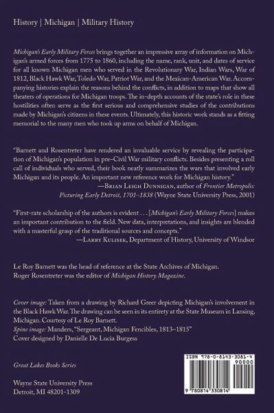 Michigan has long been proud of its military service, but many of its early accomplishments are unknown to most of the state's residents. This book fills the void in our knowledge by bringing together an impressive array of information on Michigan's armed forces from 1775 to 1860. Here we find the name rank, unit, and dates of service for all known Michigan men who served in the Revolutionary War, Indian Wars, War of 1812, Black Hawk War, Toledo War, Patriot War, and the Mexican-American War. Accompanying histories explain the reasons behind the conflicts and include maps showing all theaters of operations for Michigan troops. The in-depth accounts of the state's role in these hostilities often serve as the first serious and comprehensive studies of the contributions made by its citizens in these events. Ultimately, this book stands as a fitting memorial to the many men who took up arms on behalf of Michigan.