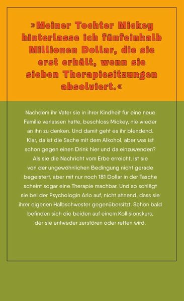 Zwei Schwestern. Sieben Therapiestunden. Ein Problem. Ein mitreißendes Debüt über die großen und kleinen Katastrophen des AlltagsAls die 33-jährige Mickey die Nachricht vom Tod ihres Vaters erhält, ist sie nicht sonderlich getroffen. Sie ist ohne ihn aufgewachsen, zeit ihres Lebens ist er ein Fremder geblieben. Umso überraschender, dass er ihr ein Vermögen hinterlassen hat. Der kuriose Haken dabei: Mickey muss sieben Therapiesitzungen absolvieren, bevor das Erbe freigegeben wird. Und so schlägt sie bei der Therapeutin Arlo auf, nicht ahnend, dass sie ihrer eigenen Halbschwester gegenübersitzt. Auch Arlo weiß nicht, wer sich hinter der neuen Patientin verbirgt, und schon bald befinden sich die beiden auf einem Kollisionskurs, der sie entweder zerstören oder retten wird.