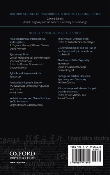 Eric Mathieu is Associate Professor at the University of Ottawa. He completed his PhD in 2002 at University College London. His research focuses on Modern and Old French, and on the Algonquian language Ojibwe. His work has been published in a number of journals including Linguistic Inquiry, Natural Language and Linguistic Theory, Lingua, Probus, and Linguistic Variation. He is also co-author of The Syntax and Semantics of Split Constructions (Palgrave, 2004) and co-editor of Variation within and across Romance Languages (Benjamins, 2011). Robert Truswell is a Chancellor's Fellow in the school of Philosophy, Psychology, and Language Science at the University of Edinburgh and Adjunct Professor in the Department of Linguistics at the University of Ottawa. His research covers a range of topics associated with syntax-external influences on syntactic phenomena, and his previous OUP publications are Events, Phrases, and Questions (2011) and Syntax and its Limits (2013, with Raffaella Folli and Christina Sevdali). He is also the editor of the forthcoming Oxford Handbook of Event Structure.