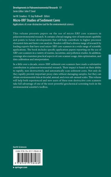 Part 1 - Marine studies.- Part 2 - Lake and river studies.- Part 3 - Environmental geochemistry and forensic applications.- Part 4 - Technological aspects.- Part 5 - The future of µXRF core scanning.