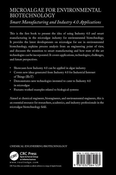 This book presents the idea of using Industry 4.0 and smart manufacturing in the microalgae industry for environmental biotechnology. It provides the latest developments, explains process analysis from an engineering point of view, and discusses the transition to smart manufacturing and how state of the art technologies can be incorporated.