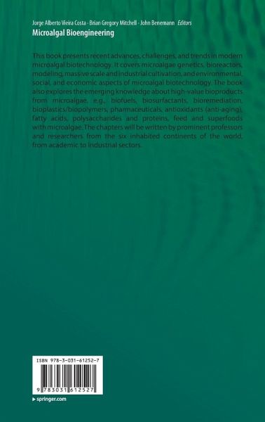 This book presents recent advances, challenges, and trends in modern microalgal biotechnology. It covers microalgae genetics, bioreactors, modeling, massive scale and industrial cultivation, and environmental, social, and economic aspects of microalgal biotechnology. The book also explores the emerging knowledge about high-value bioproducts from microalgae, e.g., biofuels, biosurfactants, bioremediation, bioplastics/biopolymers, pharmaceuticals, antioxidants (anti-aging), fatty acids, polysaccharides and proteins, feed and superfoods with microalgae. The chapters will be written by prominent professors and researchers from the six inhabited continents of the world, from academic to industrial sectors.
