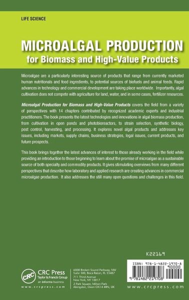 Microalgae are a particularly interesting source of products that range from currently marketed human nutritionals and food ingredients, to potential sources of biofuels and animal feeds. Rapid advances in technology and commercial development are taking place worldwide. Importantly, algal cultivation does not compete with agriculture for land, water, and in some cases, fertilizer resources. Microalgal Production for Biomass and High-Value Products covers the field from a variety of perspectives with 14 chapters contributed by recognized academic experts and industrial practitioners. The book presents the latest technologies and innovations in algal biomass production, from cultivation in open ponds and photobioreactors, to strain selection, synthetic biology, pest control, harvesting, and processing. It explores novel algal products and addresses key issues, including markets, supply chains, business strategies, legal issues, current products, and future prospects. This book brings together the latest advances of interest to those already working in the field while providing an introduction to those beginning to learn about the promise of microalgae as a sustainable source of both specialty and commodity products. It gives stimulating overviews from many different perspectives that describe how laboratory and applied research are creating advances in commercial microalgae production. It also addresses the still many open questions and challenges in this field.