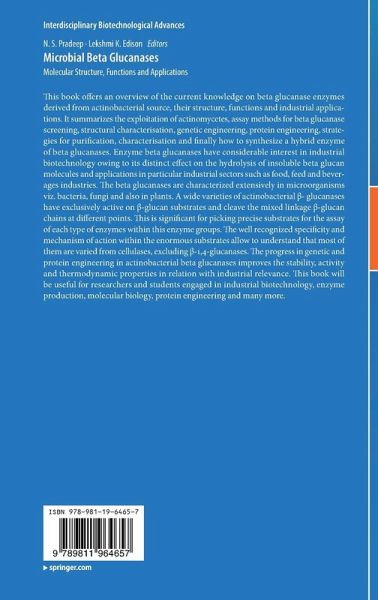 1.An Introduction to Beta Glucan and Beta Glucanases.- 2.Industrial Applications of Beta Glucanases.- 3.Microbial Sources of Beta Glucanase Enzymes.- 4.Role of Beta Glucanases in Animal Nutrition.- 5.Betaglucanse in Breweries.- 6. Exploitation of Actinobacteria for Beta Glucanolytic enzymes -Screening and Characterisation.- 7.Structural Characterisation of Beta Glucanase Genes from Actinobacteria.- 8.Application of Codon Optimization in Actinobacterial Beta Glucanases.- 9.Actinobacterial Beta Glucanases: Recombinant Expression of in E. coli.- 10.Purification and Properties of Recombinant Beta Glucanases Enzymes.- 11.Fungal Beta Glucanases.- 12.Industrial Production and Characterisation of Beta Glucanases.- 13.Protein Engineering of Beta Glucanase Enzymes.- 14.Biotechnological Avenues in Hybrid Beta Glucanase Enzyme Production.