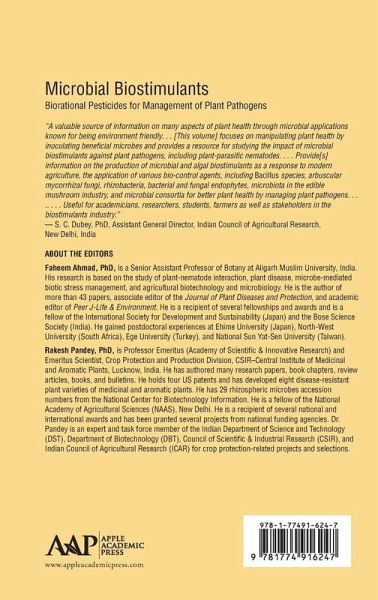 Faheem Ahmad, PhD, is a Senior Assistant Professor in the Department of Botany at Aligarh Muslim University, Aligarh, India. His research is based on the study of plant-nematode interaction, plant disease, microbe-mediated biotic stress management, and agricultural biotechnology and microbiology. He is the author of more than 43 papers, associate editor of the Journal of Plant Diseases and Protection (Springer), and academic editor of Peer J-Life & Environment.Dr. Ahmad has guided one PhD student and several MSc students to date. He is a recipient of several fellowships and awards, including NRF, TSRO Young Scientist, SERB-DST Young Scientist, and TUBITAK Foreign Researcher Award. He is a fellow of the International Society for Development and Sustainability (Japan) and Bose Science Society (India). He gained postdoctoral experiences at Ehime University (Japan), North-West University (South Africa), Ege University (Turkey), and National Sun Yat-Sen University (Taiwan). Rakesh Pandey, PhD, is Professor Emeritus (Academy of Scientific & Innovative Research) and Emeritus Scientist, Crop Protection and Production Division, CSIR-Central Institute of Medicinal and Aromatic Plants, Lucknow, India. He has authored many research papers, book chapters, review articles, books, and bulletins. He holds four US patents and has developed eight disease-resistant plant varieties of medicinal and aromatic plants. He has 29 rhizospheric microbes accession numbers from the National Center for Biotechnology Information. He is a Fellow of the National Academy of Agricultural Sciences (NAAS), New Delhi. He is a recipient of several national and international awards including the Prof. H.M. Shah Memorial Award (2017), Dr. Manmohan Attavar Gold Medal in Floriculture (2017), M.R. Siddiqi Memorial Award (2018), and Prof. Uma Kant Sinha Memorial Award (2021), among others. He is President of the Indian Phytopathological Society (2022-23). Dr. Pandey has so far guided 13 PhD students and several MSc and MTech students. He has been granted several projects from national funding agencies. Dr. Pandey is an expert and task force member of the Department of Science and Technology (DST), Department of Biotechnology (DBT), Council of Scientific & Industrial Research (CSIR), and Indian Council of Agricultural Research (ICAR) for crop protection-related projects and selections.