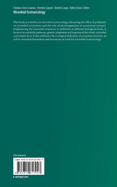 A brief introduction to the history of pollution: from local to globl.- From Microbial Ecology to Microbial Ecotoxicology.- Inter-disciplinary in microbial ecotoxicology: Microbiology and Chemistry in the Environment: 2 symbiotic species in the same biotope.- Microbial responses to pollution - Ecotoxicology: Introducing the different biological levels.- Metabolic responses : Engineered nanoparticles in the environments: interactions with microbial systems and microbial activity.- Genetic adaptation : Marine Microbial Community Adaptation and Resiliency to Anthropogenic Stresses through Horizontal Gene Transfer.- Genetic adaptations of bacteria for metabolism of polycyclic aromatic hydrocarbons.- Microbial community response: Microbial community responses to contaminants and the use of molecular techniques.- Bacterial community response to hydrocarbon contamination in soils and marine sediments: a critical review of case studies.- Ecological indicators of ecosystem recovery : Microbialcommunities as ecological indicators of ecosystem recovery following chemical pollution.- Microbial Biomarkers.- Bacterial bioreporter applications in ecotoxicology: concepts and practical approach.- Microbial Biosensors for metal(loid)s.- Microbial Ecotoxicology: Looking to the Future.