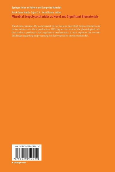 Microbial exoploysaccharides: An introduction.- Techniques used for characterization of microbial exopolysaccharides: A review.- Molecular basis and genetic regulation of EPS.- Molecular engineering of bacterial exopolysaccharide for improved properties.- Extremophiles: As a versatile source of EPS.- Pullulan: biosynthesis, production and applications.- Exopolysaccharides in drug delivery systems.- Exopolysaccharides in food processing industrials.- Microbial EPS as immunomodulatoryagents.- Novel insights of microbial exopolysaccharides as bio-adsorbents for the removal of heavy metals from soil and wastewater.- Applications of EPS in environmental bioremediations.- Cost-benefit analysis and industrial potential ofexopolysaccharides.