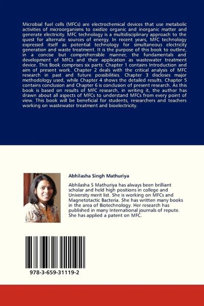 Microbial fuel cells (MFCs) are electrochemical devices that use metabolic activities of microorganisms to oxidize organic and inorganic matter and generate electricity. MFC technology is a multidisciplinary approach to the quest for alternate sources of energy. In recent years, MFC technology expressed itself as potential technology for simultaneous electricity generation and waste treatment. It is the purpose of this book to outline, in a concise but comprehensible manner, the fundamentals and development of MFCs and their application as wastewater treatment device. This Book comprises six parts: Chapter 1 contains Introduction and aim of present work. Chapter 2 deals with the critical analysis of MFC research in past and future possibilities. Chapter 3 discloses major methodology used, while Chapter 4 shows the detailed results. Chapter 5 contains conclusion and Chapter 6 is conclusion of present research. As this book is based on results of MFC research, in writing it, the author has drawn about all aspects of MFCs to understand MFCs from every point of view. This book will be beneficial for students, researchers and teachers working on wastewater treatment and bioelectricity.