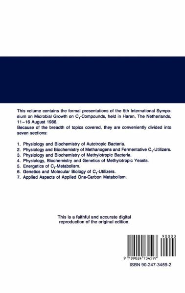An eightieth anniversary of the study of microbial C1 metabolism.- Physiology and Biochemistry of Autotrophic Bacteria.- Physiology and Biochemistry of Autotrophic Bacteria.- Metabolic and Molecular Regulation of the CO2-Assimilating Enzyme System in Aerobic Chemoautotrophs.- CO2 fixation in Rhodopseudomonas blastica.- Autotrophic CO2 Fixation in Chemotrophic Anaerobic Bacteria.- Aerobic and Anaerobic Extremely Thermophilic Autotrophs.- Physiology and Biochemistry of Methanogens and Fermentative C1 Utilizers.- Biochemical Aspects of Methane Formation in Methanobacterium thermoautotrophicum.- Intermediary Steps in Methanogenesis.- Recent Developments on the Biochemistry of Methanogenesis from Acetate.- C1-Utilizing Acetogens.- Ecology of C1-Metabolizing Anaerobes.- Physiology and Biochemistry of Methylotrophic Bacteria.- Physiology and Biochemistry of Methylotrophic Bacteria.- Metabolic Regulation in Facultative Methylotrophs.- Quinoproteins in the Dissimilation of C1 Compounds.- NMR Spectroscopy in the Study of C1-Metabolism.- Comparative Biochemistry of C1-Carriers.- Physiology, Biochemistry and Genetics of Methylotrophic Yeasts.- Methylotrophic Yeasts - 1986.- Metabolic Regulation in Methylotrophic Yeasts.- Biochemistry of Alcohol Oxidase.- Genetics of Methylotrophic Yeasts.- Protein Topogenesis in Methylotrophic Yeasts.- Energetics of C1-Metabolism.- Energetics of C1-Compound Metabolism.- Energy Metabolism in Chemolithotrophs.- Energy Metabolim of Aerobic, Methylotrophic Bacteria.- Energy Metabolism in Methanogens.- Theoretical Limits of Growth Yields and an Analysis of Experimental data.- Genetics and Molecular Biology of C1-Utilizers.- The Molecular Genetics of C1 Utilizing Microorganisms - An Overview.- Genetics of Aerobic Lithoautotrophs.- Molecular Biology andRegulation of Microbial CO2 fixation.- Molecular Biology of Methanol Oxidation.- Divergence of Methanogens, Conservation of the Hisl Gene Sequence in All Three Biological Kingdoms and the Status of Methanobacterium thermoautotrophicum.- Applied Aspects of One-Carbon Metabolism.- The Potential of One-Carbon Compounds as Fermentation Feedstocks.- Chemical Synthesis from C1 Compounds.- Microbiological Synthesis from C1-Compounds: Application of Some Methylotrophic Functions to Synthesis of Useful Chemicals.- The Methylotrophic Yeast Pichia pastoris as a Host for Heterologous Protein Production.- Authors index.