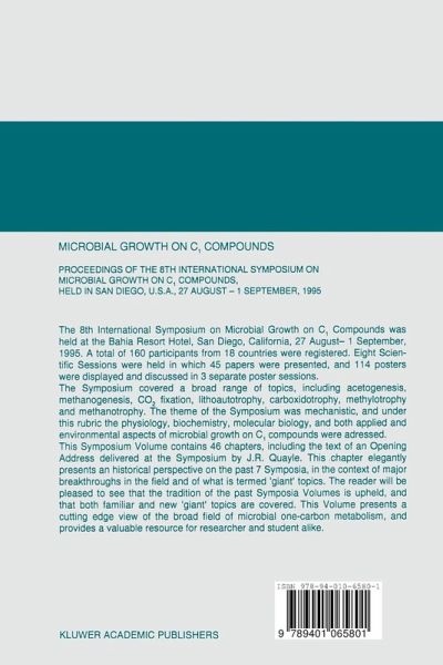 This Symposium Volume contains 46 chapters, including the text of an Opening Address delivered at the Symposium by J.R. Quayle. This chapter elegantly presents an historical perspective on the past 7 Symposia, in the context of major breakthroughs in the field and of what is termed `giant' topics. The reader will be pleased to see that the tradition of the past Symposia Volumes is upheld, and that both familiar and new `giant' topics are covered. This Volume presents a cutting edge view of the broad field of microbial one-carbon metabolism, and provides a valuable resource for researcher and student alike.