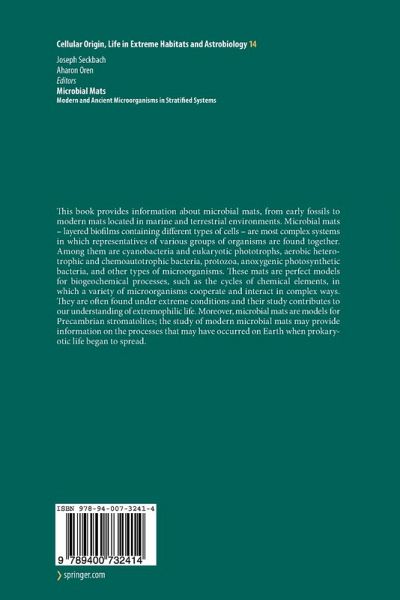 This book provides information about microbial mats, from early fossils to modern mats located in marine and terrestrial environments. Microbial mats - layered biofilms containing different types of cells - are most complex systems in which representatives of various groups of organisms are found together. Among them are cyanobacteria and eukaryotic phototrophs, aerobic heterotrophic and chemoautotrophic bacteria, protozoa, anoxygenic photosynthetic bacteria, and other types of microorganisms.