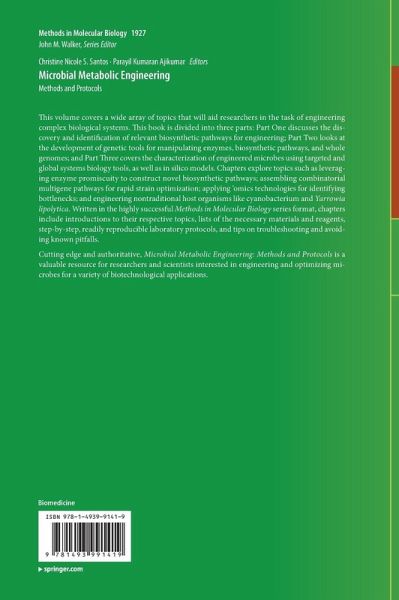 Cutting edge and authoritative, Microbial Metabolic Engineering: Methods and Protocols is a valuable resource for researchers and scientists interested in engineering and optimizing microbes for a variety of biotechnological applications.