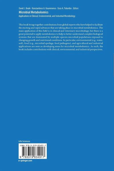 This book brings together contributions from global experts who have helped to facilitate the exciting and rapid advances that are taking place in microbial metabolomics. The main application of this field is in clinical and veterinary microbiology, but there is a great potential to apply metabolomics to help to better understand complex biological systems that are dominated by multiple-species microbial populations exposed to changing growth and nutritional conditions. In particular, environmental (e.g., water, soil), food (e.g., microbial spoilage, food pathogens), and agricultural and industrial applications are seen as developing areas for microbial metabolomics. As such, the book includes contributions with clinical, environmental, and industrial perspectives.
