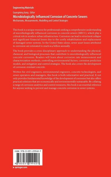 This book is a unique resource for professionals seeking a comprehensive understanding of microbiologically influenced corrosion in concrete sewers (MICC), which play a critical role in modern urban infrastructure. Corrosion can lead to structural collapse and significant financial losses due to the costly rehabilitation and replacement of damaged sewer systems. In the United States alone, sewer asset losses attributed to corrosion are estimated to reach $14 billion annually.