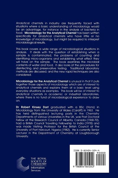 Analytical chemists in industry are frequently faced with situations where a basic understanding of microbiology would be an advantage, for instance in the analysis of bacteria in food. Microbiology for the Analytical Chemist has been written specifically for analytical chemists who have little or no knowledge of microbiology, but might be required to interpret microbiological results. This book covers a wide range of microbiological situations in analysis. It deals with the question of establishing when a sample is contaminated, the problems of counting and identifying micro-organisms and establishing what effect they will have on the sample. The book examines the microbial contents of water and food. It also looks at the procedures for disinfecting and preservative testing. Traditional laboratory methods are discussed, and new rapid techniques are also considered. Microbiology for the Analytical Chemist is unusual in that it pulls together those aspects of microbiology which are of interest to analytical chemists and explains them at a basic level using practical situations as examples. This book will also be of interest to analytical chemists in academic or industrial laboratories, where there is no fund of microbiological experience to draw on.
