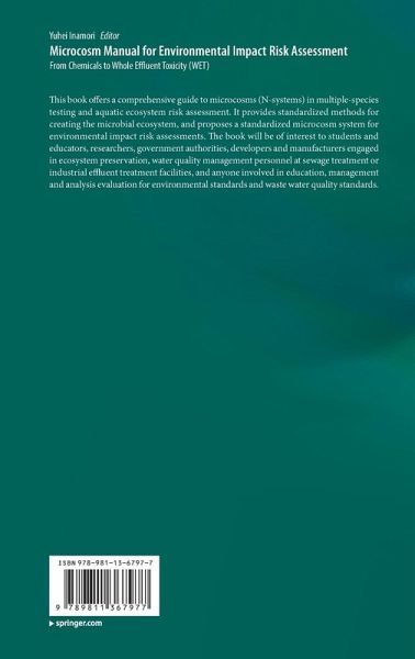 This book offers a comprehensive guide to microcosms (N-systems) in multiple-species testing and aquatic ecosystem risk assessment. It provides standardized methods for creating the microbial ecosystem, and proposes a standardized microcosm system for environmental impact risk assessments. The book will be of interest to students and educators, researchers, government authorities, developers and manufacturers engaged in ecosystem preservation, water quality management personnel at sewage treatment or industrial effluent treatment facilities, and anyone involved in education, management and analysis evaluation for environmental standards and waste water quality standards.