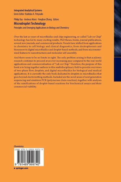 Preface.- Physics of multiphase microflows and microdroplets.- Microfluidic droplet manipulations and its applications.- Active control of droplet formation process in microfluidics.- Recent advances in electrowetting microdroplet technologies.- Automated droplet microfluidic chips for biochemical assays.- The dropletisation of bio-reactions.- Droplet-based microfluidics as a biomimetic principle: from PCR-based virus diagnotics to a generalized concept for handling of biomolecular information.- Droplet microreactors for materials synthesis.- Single-cell analysis.- Trends and perspectives.