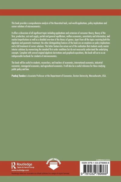It offers a discussion of all significant topics including applications and extension of consumer theory, theory of the firm, production, cost and supply, partial and general equilibrium, welfare economics, uncertainty and information, and market imperfections as well as a detailed overview of the theory of games. Apart from all the topics receiving both the algebraic and geometric treatment, the other distinguishing features of the book are an emphasis on policy implications and a full treatment of corner solutions. This latter feature has arisen out of the realization that students easily master interior solutions by memorizing the standard first-order conditions but do not necessarily understand the underlying concepts. Complete with several original algebraic derivations and graphical expositions, this book will serve as an indispensable textbook for students of microeconomics.