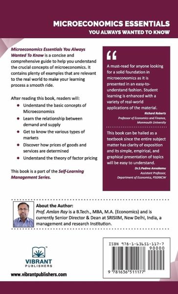 A Beginner's Guide to Demand, Supply, Consumer Behavior, Market Types, Factor Pricing & International Trade. A go-to guide for understanding all the crucial concepts that form the building blocks of microeconomics.Have you wondered how companies decide the price of their products? What factors do companies consider while allocating their resources? How does consumer behavior affect the factors of production? Microeconomics Essentials You Always Wanted To Know has the answers to all your questions. The book shows how the demand of consumers affects the market supply and how price is a major determinant of them. Next, the book goes on to explain consumer behavior with the help of cardinal and ordinal utility approaches. The book dives deep into the functions of markets and the roles that they play in a booming or receding economy. Lastly, it touches upon the topic of international trade and its advantages for a country. It contains plenty of examples that are relevant to the real world which will make it easier for you to grasp the concepts. Microeconomics Essentials You Always Wanted To Know is a go-to guide for understanding all the crucial concepts that form the building blocks of microeconomics. After reading this book, readers will:Understand the basic concepts of Microeconomics Learn the relationship between demand and supply Get to know the various types of markets Discover how prices of goods and services are determined Understand the theory of factor pricing Appreciate policy decisions related to taxation, interest rate, and international trade About the Series Microeconomics Essentials You Always Wanted to Know is part of the Self-Learning Management Series. This series is designed to help students, new managers, career switchers, and entrepreneurs learn essential management lessons and covers every aspect of business, from HR to Finance to Marketing to Operations across any and every industry. Each book includes fundamentals, important concepts, standard and well-known principles, and practical ways of application of the subject matter.