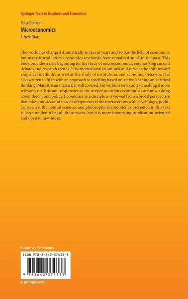 The world has changed dramatically in recent years and so has the field of economics, but many introductory economics textbooks have remained stuck in the past. This book provides a new beginning for the study of microeconomics, emphasizing current debates and research trends. It is international in outlook and reflects the shift toward empirical methods, as well as the study of institutions and economic behavior. It is also written to fit in with an approach to teaching based on active learning and critical thinking. Mainstream material is still covered, but within a new context, making it more relevant, realistic and responsive to the deeper questions economists are now asking about theory and policy. Economics as a discipline is viewed from a broad perspective that takes into account new developments at the intersections with psychology, political science, the natural sciences and philosophy. Economics as presented in this text is less sure that it has all the answers, but it is more interesting, application-oriented and open to new ideas.
