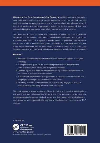 "Microextraction techniques in analytical toxicology" provides the information readers need to include about cutting-edge sample preparation techniques into their everyday analytical practice, including comprehensive information about principle.