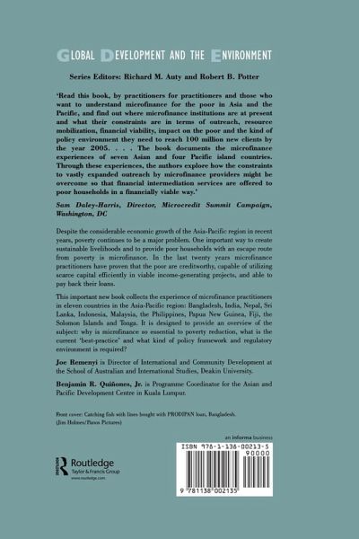 Despite the considerable economic growth of the Asia-Pacific, poverty continues to be a major problem. One key way to create sustainable livelihoods and to provide poor households an escape route from poverty is microfinance. Since the early 1980s, microfinance practitioners have proven that the poor are creditworthy, capable of utilizing scarce capital efficiently in viable incom-generating projects and able to pay back their loans. This book collects the experience of microfinance practitioners in 11 countries in the Asia-Pacific region to describe the present state of the art. It is designed to provide an overview of the subject: why it is so essential to poverty reduction; what is the best practice; what kind of policy framework and regulatory environment is required. It offers both an extensive survey of the academic literature and a selection of case studies, all from authors who have been active practitioners in microfinance for many years. The case studies cover four key countries in South Asia and three countries in East Asia in which microfinance had become particularly important. There is also a regional chapter covering the Pacific islands.