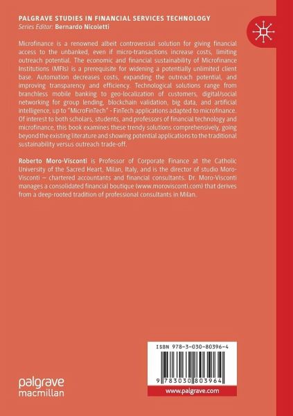Microfinance is a renowned albeit controversial solution for giving financial access to the unbanked, even if micro-transactions increase costs, limiting outreach potential. The economic and financial sustainability of Microfinance Institutions (MFIs) is a prerequisite for widening a potentially unlimited client base. Automation decreases costs, expanding the outreach potential, and improving transparency and efficiency. Technological solutions range from branchless mobile banking to geo-localization of customers, digital/social networking for group lending, blockchain validation, big data, and artificial intelligence, up to "MicroFinTech" - FinTech applications adapted to microfinance. Of interest to both scholars, students, and professors of financial technology and microfinance, this book examines these trendy solutions comprehensively, going beyond the existing literature and showing potential applications to the traditional sustainability versus outreach trade-off.