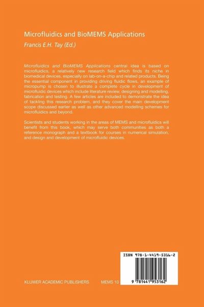 Microfluidics and BioMEMS Applications central idea is on microfluidics, a relatively new research field which finds its niche in biomedical devices, especially on lab-on-a-chip and related products. Being the essential component in providing driving fluidic flows, an example of micropump is chosen to illustrate a complete cycle in development of microfluidic devices which include literature review, designing and modelling, fabrication and testing. A few articles are included to demonstrate the idea of tackling this research problem, and they cover the main development scope discussed earlier as well as other advanced modelling schemes for microfluidics and beyond.