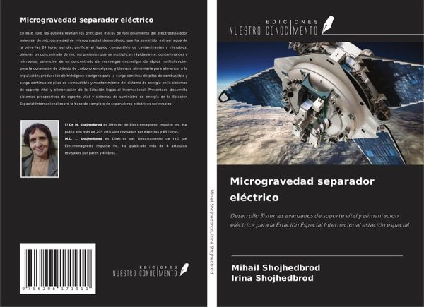 En este libro los autores revelan los principios físicos de funcionamiento del electroseparador universal de microgravedad de microgravedad desarrollado, que ha permitido: extraer agua de la orina las 24 horas del día; purificar el líquido combustible de contaminantes y microbios; obtener un concentrado de microorganismos que se multiplican rápidamente. contaminantes y microbios; obtención de un concentrado de microalgas microalgas de rápida multiplicación para la conversión de dióxido de carbono en oxígeno, y biomasa alimentaria para alimentar a la tripulación; producción de hidrógeno y oxígeno para la carga continua de pilas de combustible y carga continua de pilas de combustible y mantenimiento del sistema de energía en la sistemas de soporte vital y alimentación de la Estación Espacial Internacional. Presentado desarrollo sistemas prospectivos de soporte vital y sistemas de suministro de energía de la Estación Espacial Internacional sobre la base de complejo de separadores eléctricos universales.
