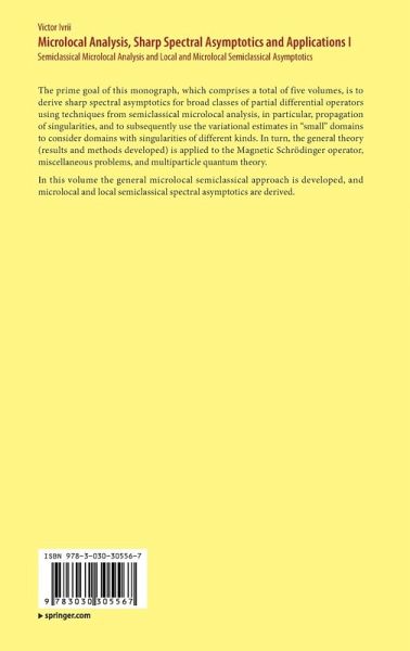 The prime goal of this monograph, which comprises a total of five volumes, is to derive sharp spectral asymptotics for broad classes of partial differential operators using techniques from semiclassical microlocal analysis, in particular, propagation of singularities, and to subsequently use the variational estimates in "small" domains to consider domains with singularities of different kinds. In turn, the general theory (results and methods developed) is applied to the Magnetic Schrödinger operator, miscellaneous problems, and multiparticle quantum theory.