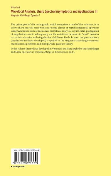 The prime goal of this monograph, which comprises a total of five volumes, is to derive sharp spectral asymptotics for broad classes of partial differential operators using techniques from semiclassical microlocal analysis, in particular, propagation of singularities, and to subsequently use the variational estimates in "small" domains to consider domains with singularities of different kinds. In turn, the general theory (results and methods developed) is applied to the Magnetic Schrödinger operator, miscellaneous problems, and multiparticle quantum theory.