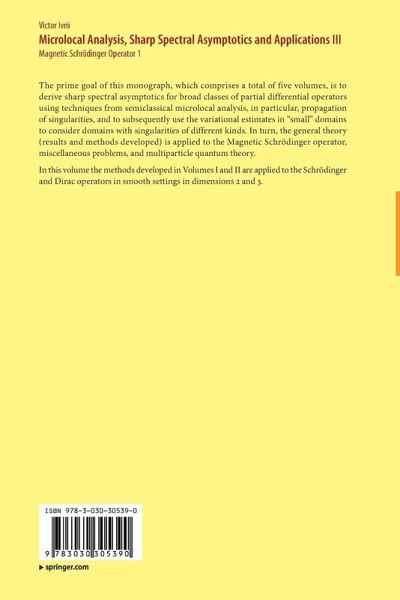 The prime goal of this monograph, which comprises a total of five volumes, is to derive sharp spectral asymptotics for broad classes of partial differential operators using techniques from semiclassical microlocal analysis, in particular, propagation of singularities, and to subsequently use the variational estimates in "small" domains to consider domains with singularities of different kinds. In turn, the general theory (results and methods developed) is applied to the Magnetic Schrödinger operator, miscellaneous problems, and multiparticle quantum theory.